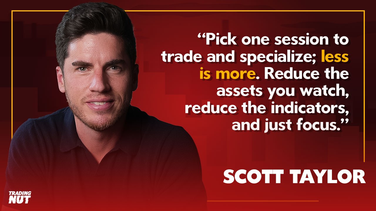 [27:59] “Pick one session to trade and specialize; less is more. Reduce the assets you watch, reduce the indicators, and just focus.”